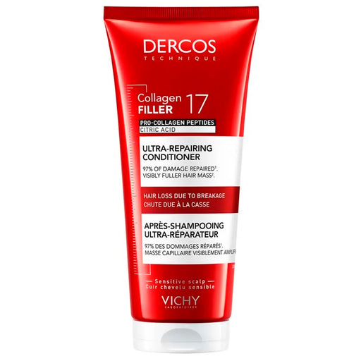 VichyVichy Dercos Acondicionador Ultra-Reparador Collagen 17 es un tratamiento acondicionador formulado para combatir la caída del cabello por rotura, f...